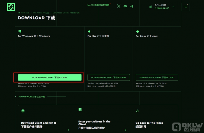 3、點擊DOWNLOAD RCLIENT,下載并安裝客戶端(根據自己電腦系統(tǒng)來選擇)。