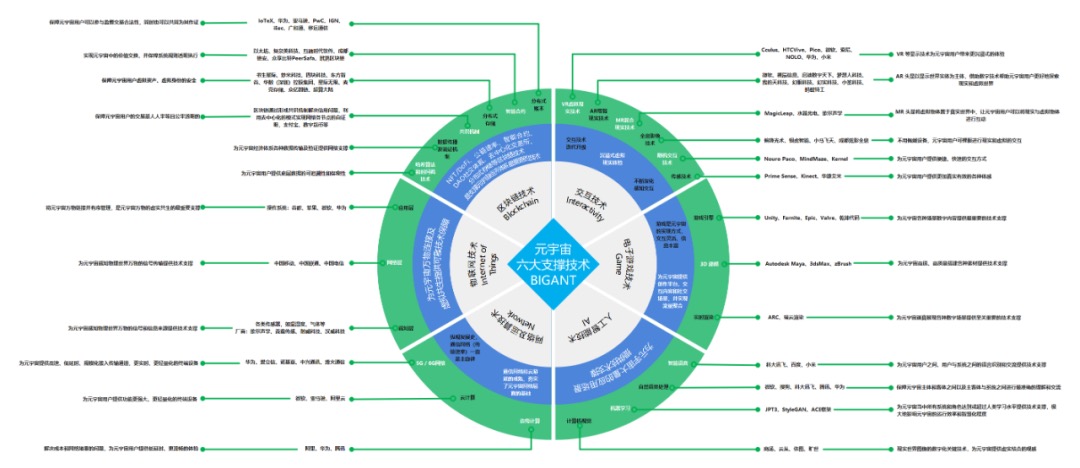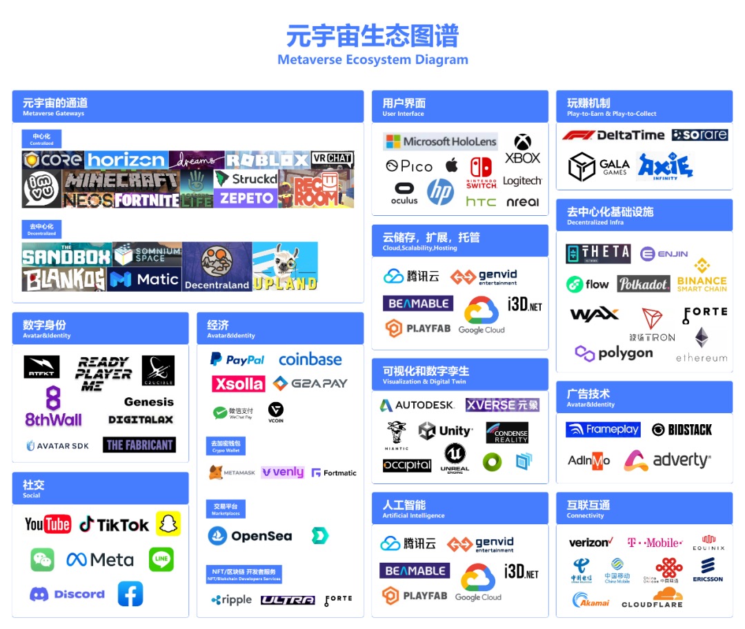 下面這張元宇宙生態圖譜,就是根據幾大版塊,將以上兩類主要企業都整理其中: